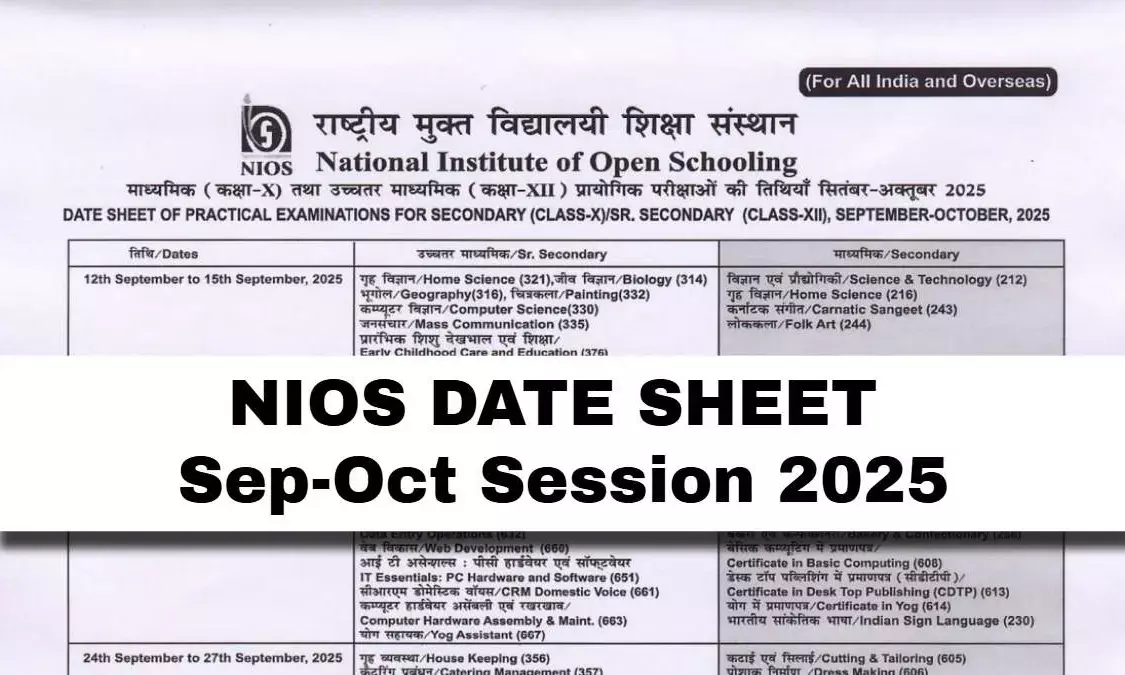 NIOS Date Sheet 2025 Released: Check Class 10 & 12 Exam Schedule
