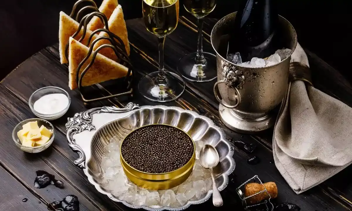 - White Gold Caviar: Harvested from albino beluga sturgeons fed with platinum dust