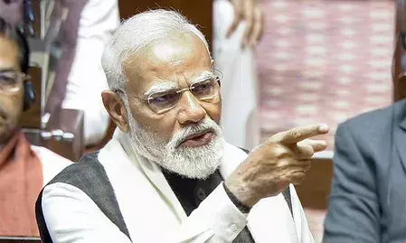 New Delhi, Feb 5 (IANS) Prime Minister Narendra Modi launched a scathing attack on the Congress party during his reply to the Motion of Thanks on the President's Address, accusing them of stealing the surname Gandhi from Gujarat while pursuing their own political interests.