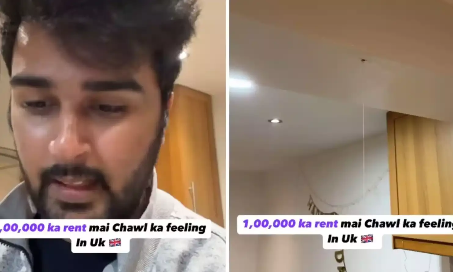 He posted a video that began with the words, "In the UK, 1,00,000 ka rent mai chawl ka feeling."